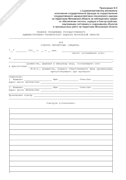 Акт осмотра территории (объекта) Госадмтехнадзором Московской области
