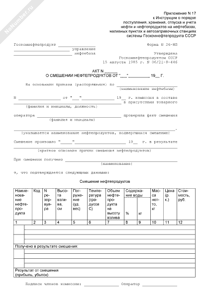 Акт о смешении нефтепродуктов (форма № 26-НП)