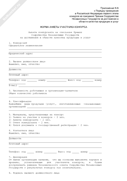 - 87Анкета конкурсанта на соискание премии Содружества Независимых Государств за достижения в области качества продукции и услуг