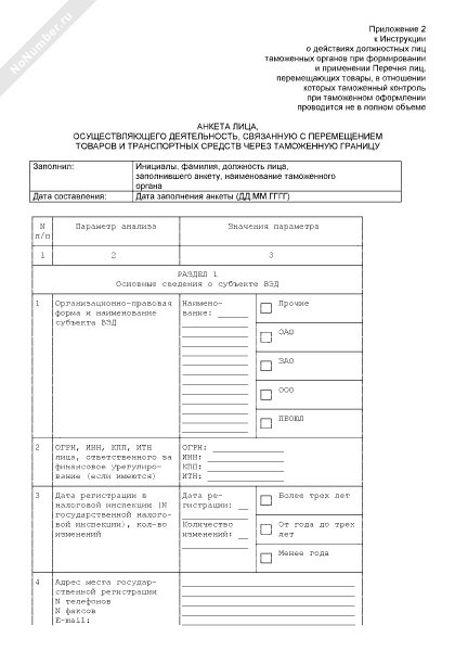 - 90Анкета лица, осуществляющего деятельность, связанную с перемещением товаров и транспортных средств через таможенную границу