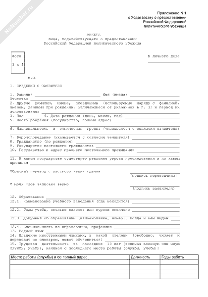 - 92Анкета лица, ходатайствующего о предоставлении Российской Федерацией политического убежища (приложение к ходатайству о предоставлении Российской Федерацией политического убежища)