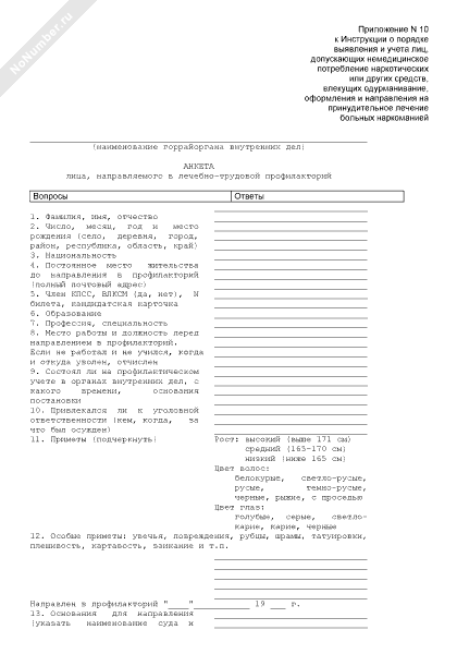 - 89Анкета лица, направляемого на принудительное лечение в лечебно-трудовой профилакторий