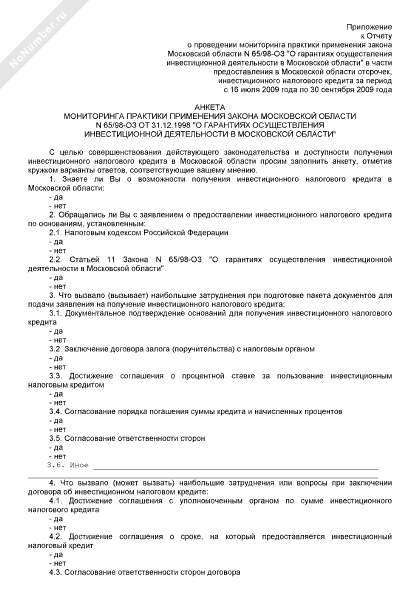 - 96Анкета мониторинга практики применения закона Московской области № 65/98-ОЗ от 31.12.1998 «О гарантиях осуществления инвестиционной деятельности в Московской области»