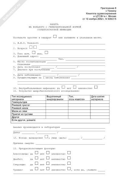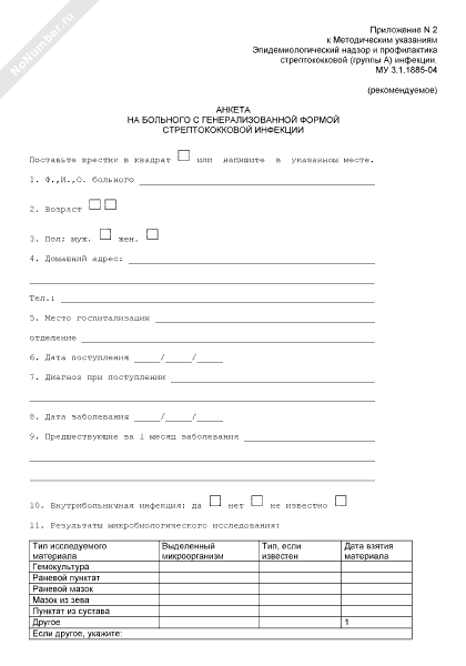- 99Анкета на больного с генерализованной формой стрептококковой инфекции в г. Москве