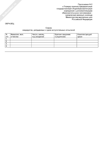 - 268Список кандидатов, допущенных к сдаче вступительных испытаний в федеральное государственное общеобразовательное учреждение с дополнительными образовательными программами — суворовское военное училище Министерства внутренних дел Российской Федерации