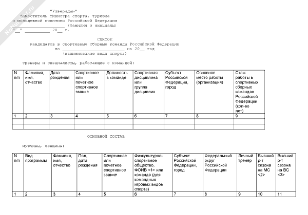 - 265Список кандидатов в спортивные сборные команды Российской Федерации