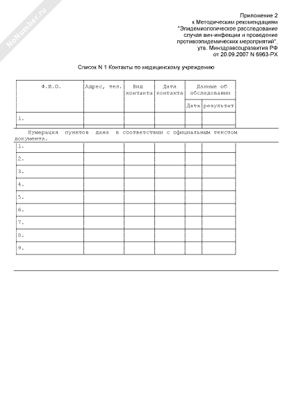 - 274Список контактов по медицинскому учреждению больного ВИЧ-инфекцией (список № 1)