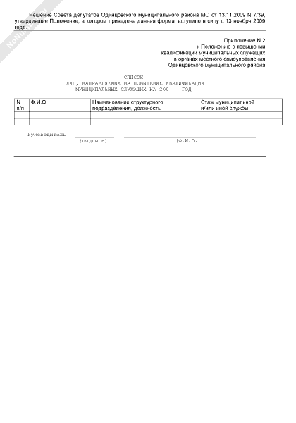 - 306Список лиц, направляемых на повышение квалификации муниципальных служащих Одинцовского муниципального района Московской области