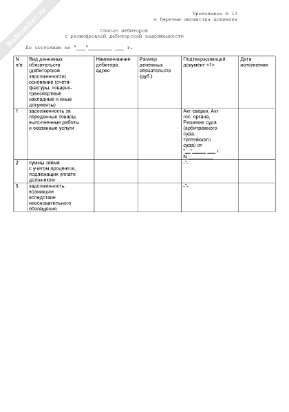- 148Список дебиторов с расшифровкой дебиторской задолженности (приложение к перечню имущества должника, в том числе имущественных прав)