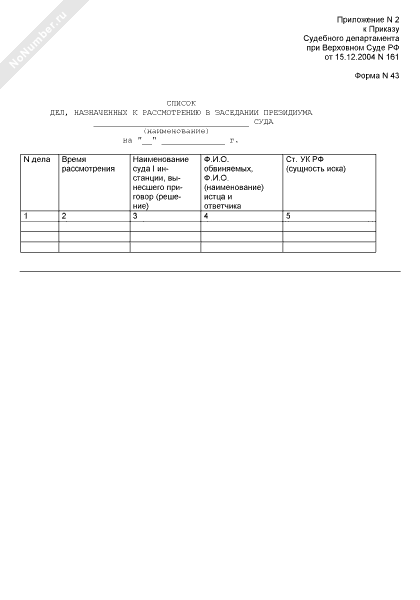 - 151Список дел, назначенных к рассмотрению в заседании президиума суда. Форма № 43