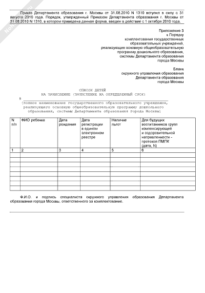 - 155Список детей на зачисление (зачисление на определенный срок) в государственное образовательное учреждение, реализующее основную общеобразовательную программу дошкольного образования, системы Департамента образования города Москвы