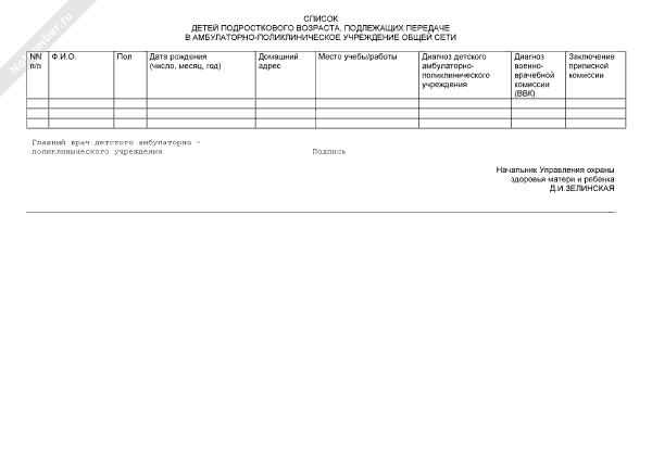 - 156Список детей подросткового возраста, подлежащих передаче в амбулаторно-поликлиническое учреждение общей сети
