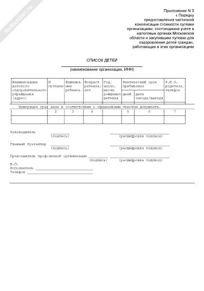 - 158Список детей, направленных в детские оздоровительные учреждения Московской области, с частичной компенсацией стоимости путевок