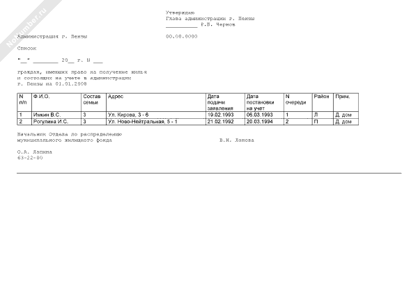 - 144Список граждан, имеющих право на получение жилья и состоящих на учете в администрации города