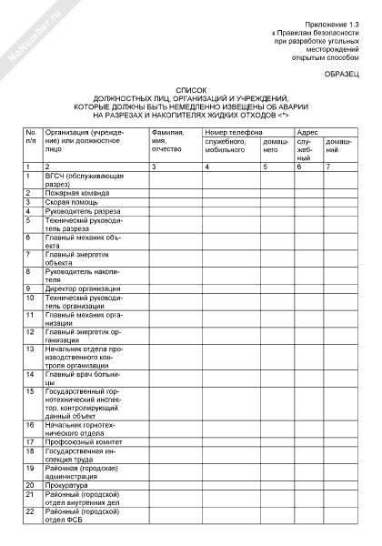 Список должностных лиц, организаций и учреждений, которые должны быть немедленно извещены об аварии на разрезах и накопителях жидких отходов (рекомендуемый образец заполнения)