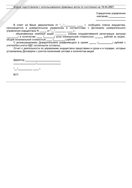 Список имущества, находящегося в доверительном управлении (приложение к договору доверительного управления ценными бумагами)