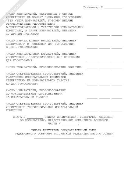 Список избирателей по избирательному участку, образованному для проведения голосования и подсчета голосов избирателей на выборах депутатов Государственной Думы Федерального Собрания Российской Федерации пятого созыва (рекомендуемый образец заполнения)