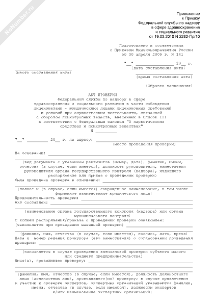 - 2135Акт проверки Федеральной службы по надзору в сфере здравоохранения и социального развития в части соблюдения лицензиатами — юридическими лицами лицензионных требований и условий при осуществлении деятельности, связанной с оборотом психотропных веществ, внесенных в Список III в соответствии с Федеральным законом «О наркотических средствах и психотропных веществах»