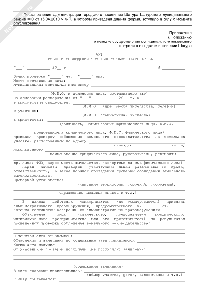 - 2121Акт проверки соблюдения земельного законодательства на территории городского поселения Шатура Московской области