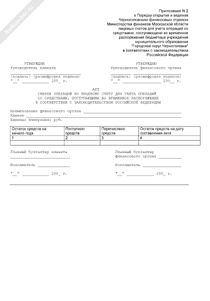 - 2236Акт сверки операций по лицевому счету в финансовом органе на территории муниципального образования «Городской округ Черноголовка» Московской области
