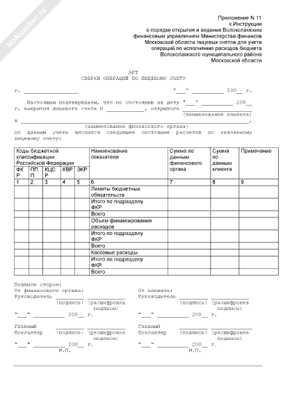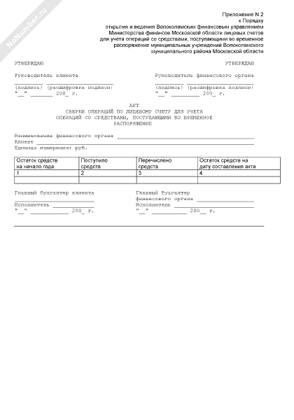 - 2234Акт сверки операций по лицевому счету клиента в финансовом органе Волоколамского муниципального района Московской области