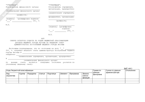 - 2238Акт сверки остатков средств по кодам бюджетной классификации источников финансирования дефицита бюджета города Москвы по лицевому счету администратора источников