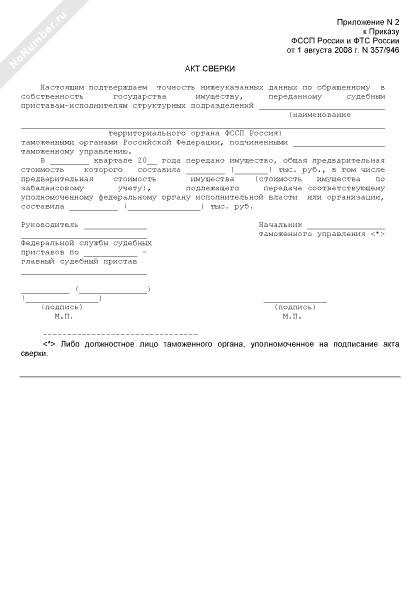 - 2239Акт сверки по обращенному в собственность государства имуществу, переданному судебным приставам-исполнителям структурных подразделений территориального органа ФССП Россия таможенными органами Российской Федерации, подчиненными таможенному управлению