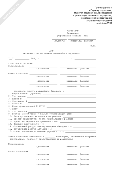 - 2441Акт технического состояния автомобиля (прицепа), находящегося в оперативном управлении учреждения или органа уголовно-исполнительной системы, подлежащего высвобождению и реализации