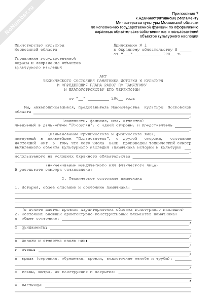 - 2452Акт технического состояния памятника истории и культуры и определения плана работ по памятнику и благоустройству его территории (приложение к Охранному обязательству на объект культурного наследия (здания), находящийся на территории Московской области)