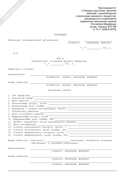 - 2445Акт технического состояния прочего имущества, находящегося в оперативном управлении таможенных органов Российской Федерации