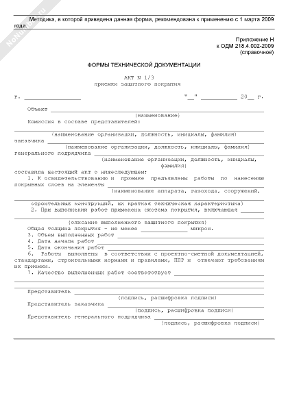 - 2639Формы технической документации дорожного хозяйства. Акт приемки защитного покрытия (N 1/3)