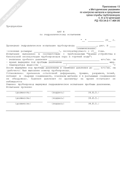 - 2622Рекомендуемые формы бланков для оформления материалов по контролю технического состояния. Акт по гидравлическому испытанию