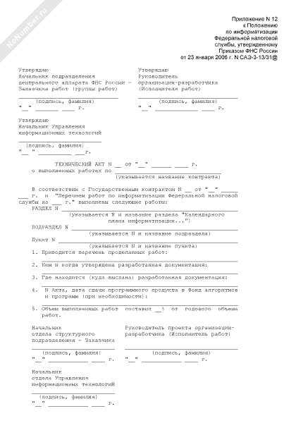 - 2629Технический акт о выполненных работах в соответствии с перечнем работ по информатизации Федеральной налоговой службы Российской Федерации