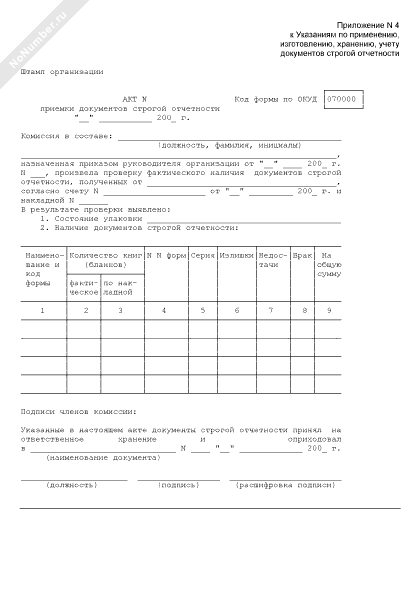 - 2636Унифицированные формы документов строгой отчетности. Акт приемки документов строгой отчетности