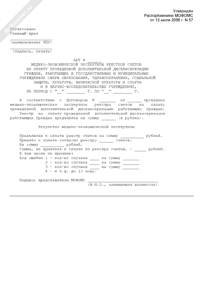 - 281Акт медико-экономической экспертизы реестров счетов на оплату проведенной дополнительной диспансеризации граждан, работающих в государственных и муниципальных учреждениях сферы образования, здравоохранения, социальной защиты, культуры, физической культуры и спорта и в научно-исследовательских учреждениях