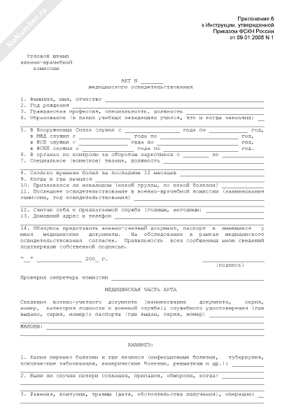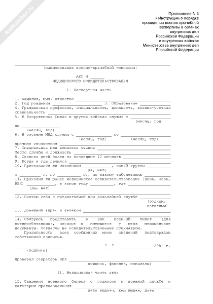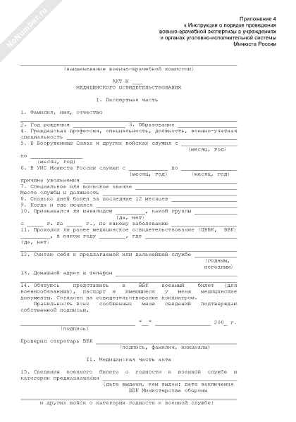 - 284Акт медицинского освидетельствования военно-врачебной комиссией гражданина, поступающего на службу в органы внутренних дел Российской Федерации