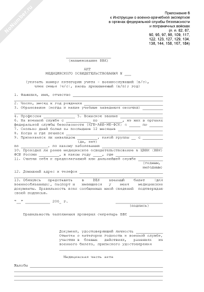 - 285Акт медицинского освидетельствования военнослужащих органов Федеральной службы безопасности и пограничных войск