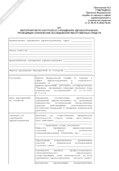 - 288Акт мероприятий по контролю в учреждениях здравоохранения, проводящих клинические исследования лекарственных средств