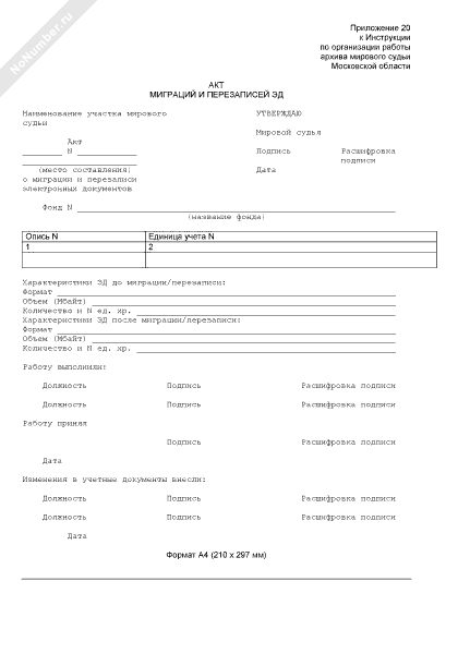 - 289Акт миграций и перезаписей электронных документов в архиве мирового судьи Московской области