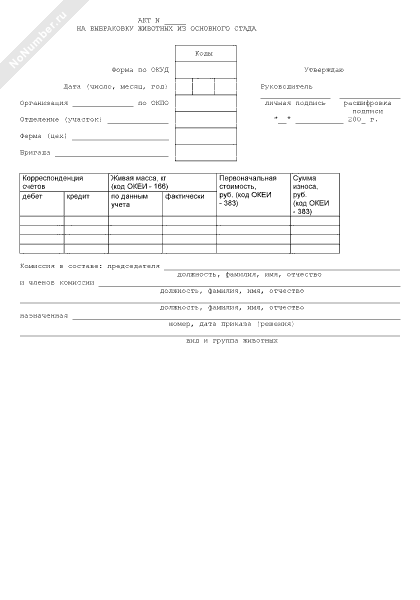 - 298Акт на выбытие животных и птицы (забой, прирезка и падеж) (типовая межотраслевая форма № СП-54)