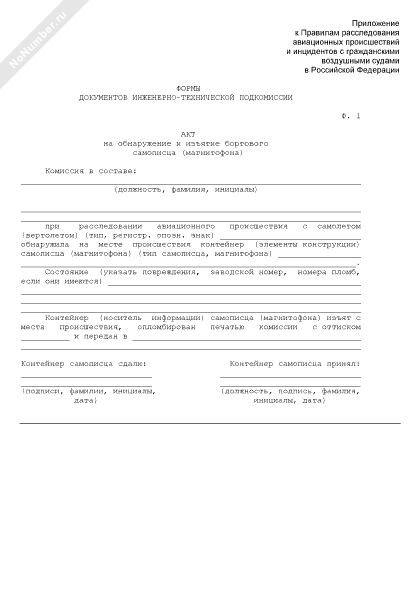 - 321Акт на обнаружение и изъятие бортового самописца (магнитофона) (форма № 1)