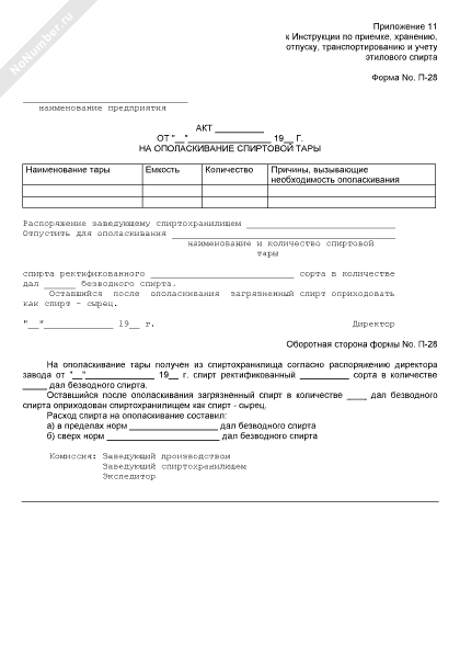 - 322Акт на ополаскивание спиртовой тары (форма № П-28)