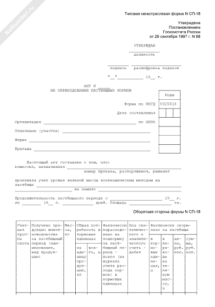 - 323Акт на оприходование пастбищных кормов (типовая межотраслевая форма № СП-18)