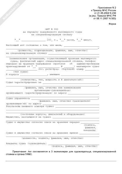 - 336Акт на передачу задержанного маломерного судна на специализированную стоянку