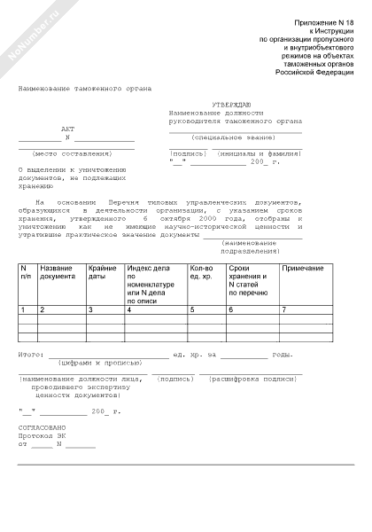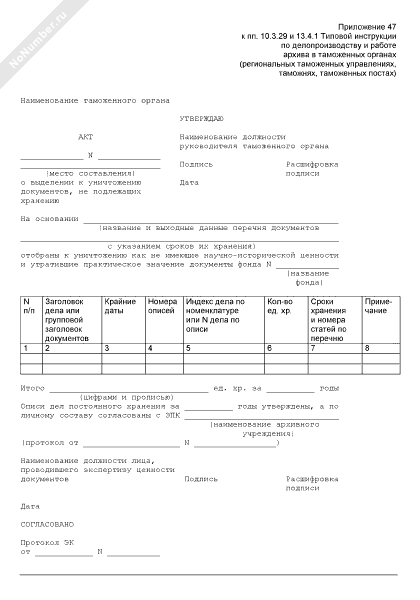 - 443Акт о выделении к уничтожению документов, не подлежащих хранению в таможенных органах Российской Федерации