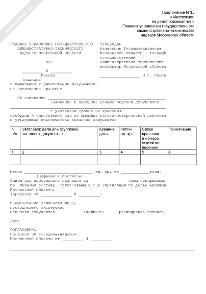- 442Акт о выделении к уничтожению документов (не имеющих научно-исторической ценности и утративших практическое значение), не подлежащих хранению в главном управлении Госадмтехнадзора Московской области