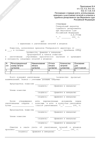- 451Акт о выделении к уничтожению печатей и штампов, утративших практическое значение и пришедших в негодность в Судебном департаменте при Верховном Суде Российской Федерации