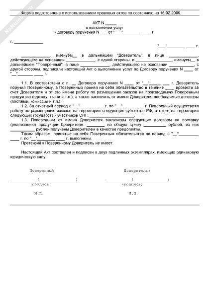 - 460Акт о выполнении услуг к договору поручения по размещению заказов на производимую продукцию