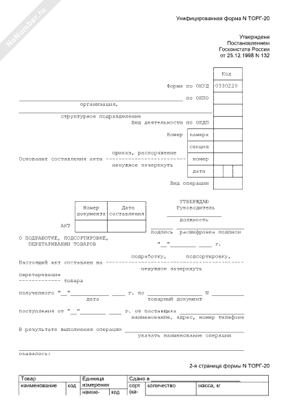 - 630Акт о подработке, подсортировке, перетаривании товаров (унифицированная форма № ТОРГ-20)