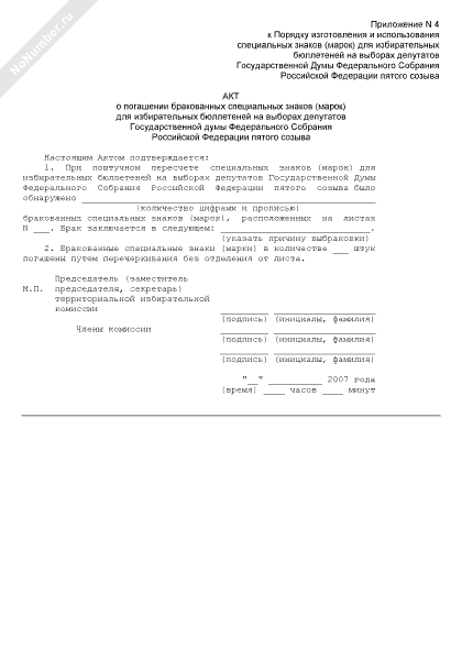 - 627Акт о погашении бракованных специальных знаков (марок) для избирательных бюллетеней на выборах депутатов Государственной думы Федерального Собрания Российской Федерации пятого созыва